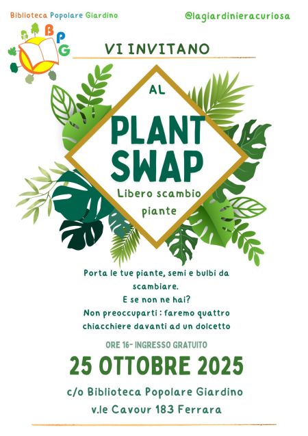 Hai una pianta che vuoi regalare? Vuoi dare nuova vita al tuo angolo verde preferito?Partecipa al nostro evento di Plant Swap- scambio di piante aperto a tutti: appassionati, pollici verdi e curiosi!SABATO 25 OTTOBRE 2025 ore 16presso la BIBLIOTECA POPOLARE GIARDINOViale Cavour n. 183, ai piedi del Grattacielo Porta piante, talee, semi, bulbi…e voglia di condividere! E […]